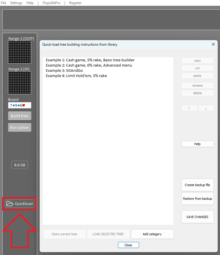 - Tree builder: Input 0c,0p,0d will mean that respectively cbets, probe bets and donk bets will be left out (see pic).