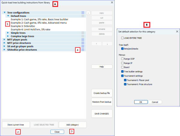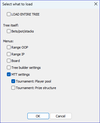 • To load only the tree (keep current ranges/board in editor): unselect Range OOP, Range IP, and Board (see screenshot B).